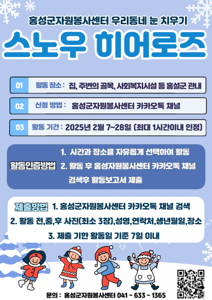 [홍성군자원봉사센터 우리동네 눈 치우기 : 스노우 히어로즈] 봉사활동 안내